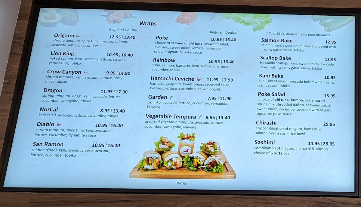 Welcome to Origami, a delightful culinary experience located at 2217 San Ramon Valley Blvd, San Ramon, CA. Specializing in unique sushi wraps, this brand takes a traditional favorite and elevates it with an innovative twist. The menu offers a stunning variety of options, from the refreshing Garden Wrap to the zesty Hamachi Ceviche Wrap and the savory Salmon Poke Wrap, all thoughtfully crafted to satisfy your cravings.